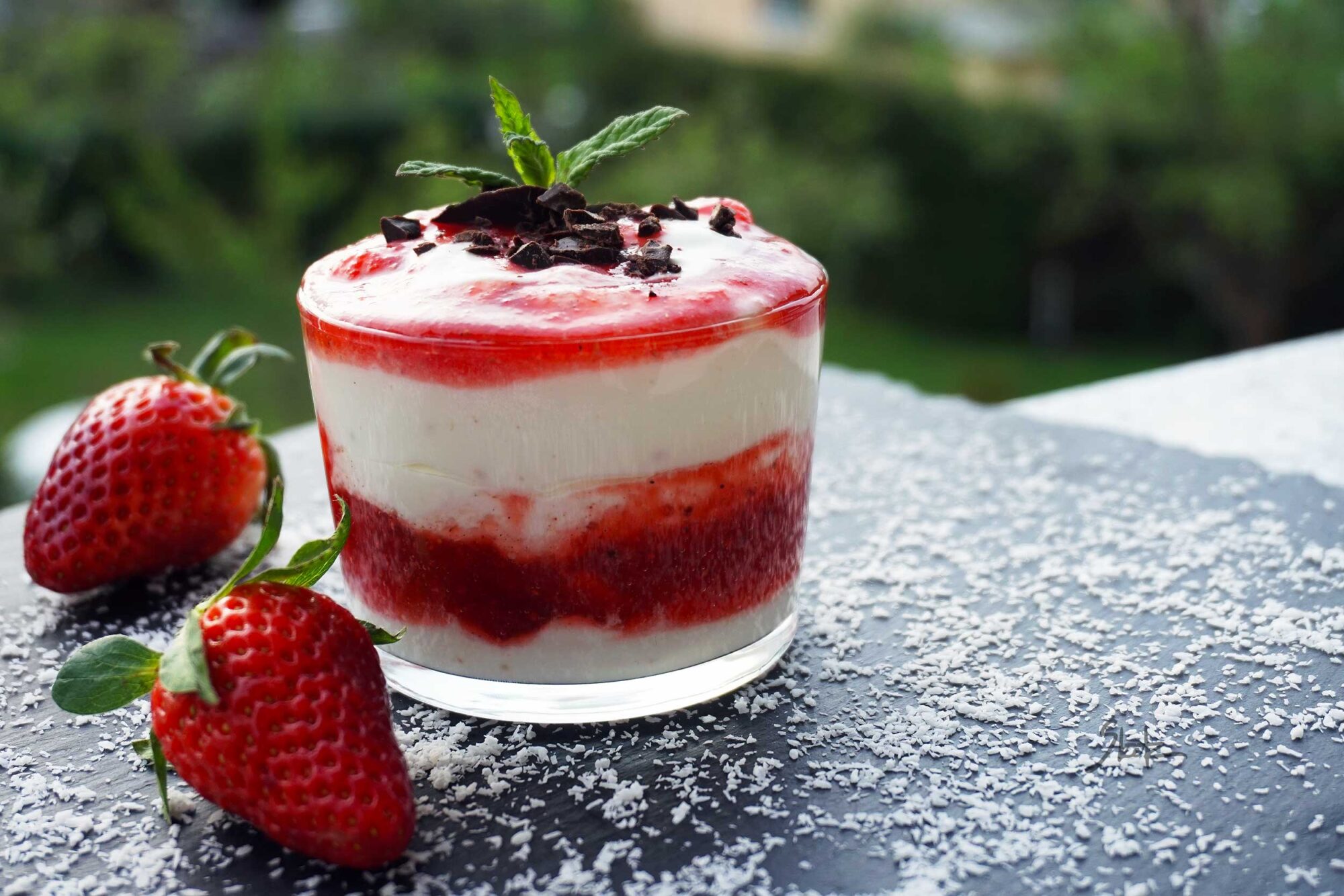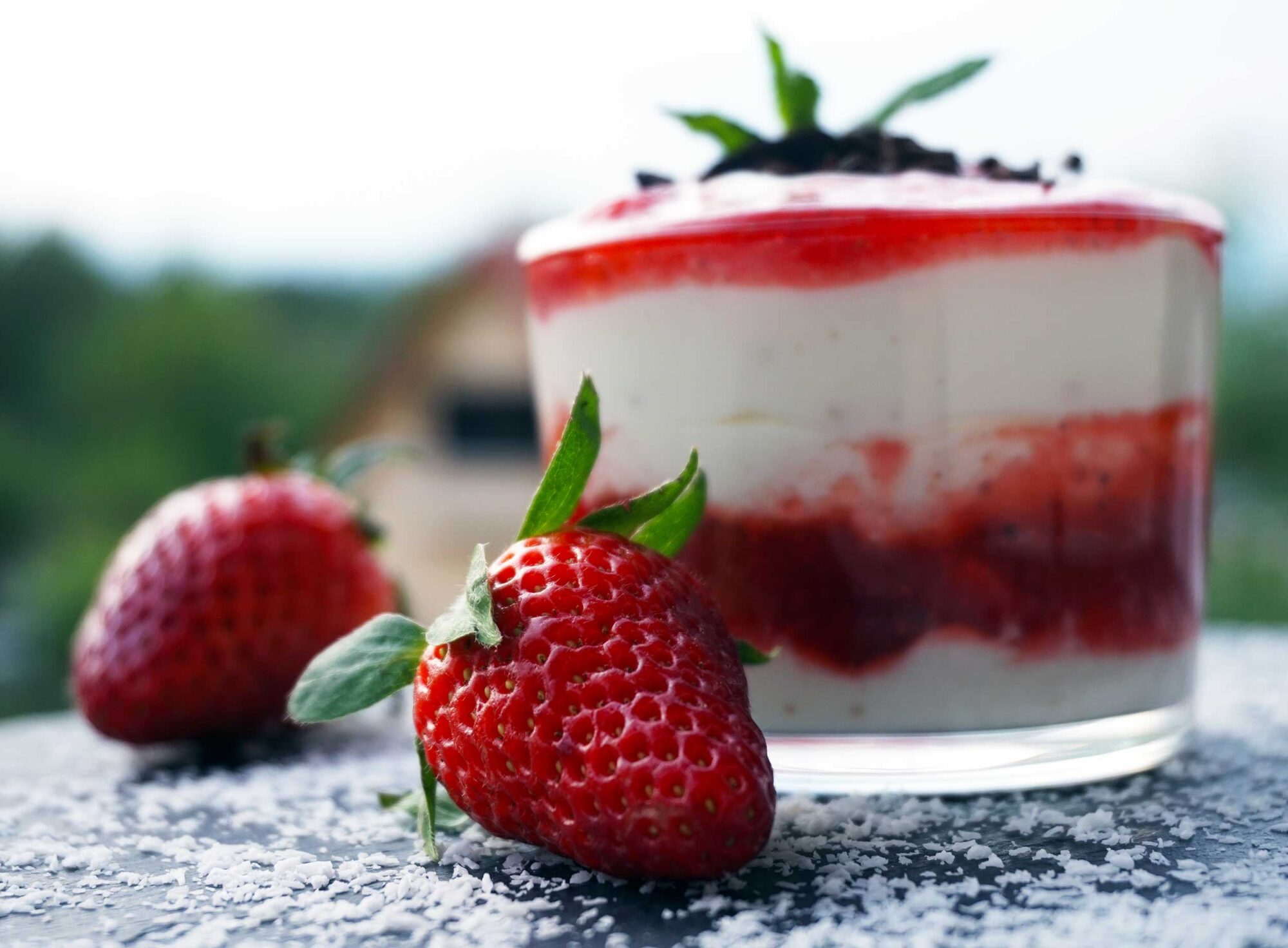 - razporedi po kozarcih, najprej plast jogurta, nato jagod in vse dokler ne zmanjka